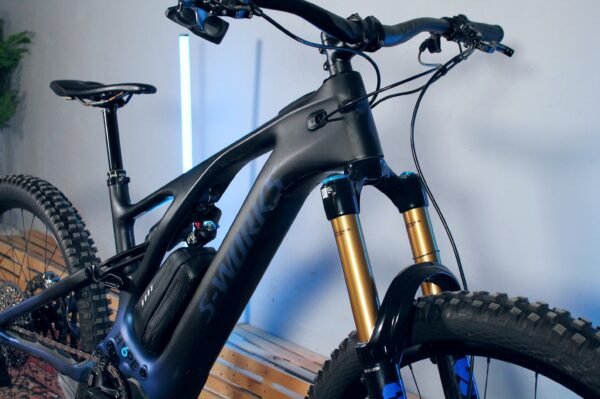 · Rėmas: Specialized S-Works Turbo Levo (2022) – anglies (FACT carbon) pilnos pakabos eMTB platforma 150/160mm