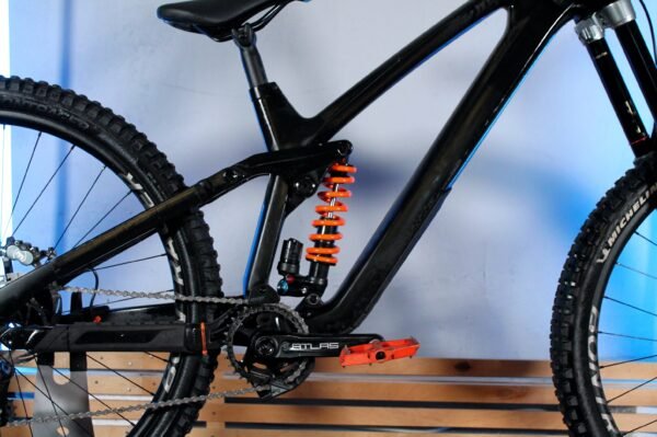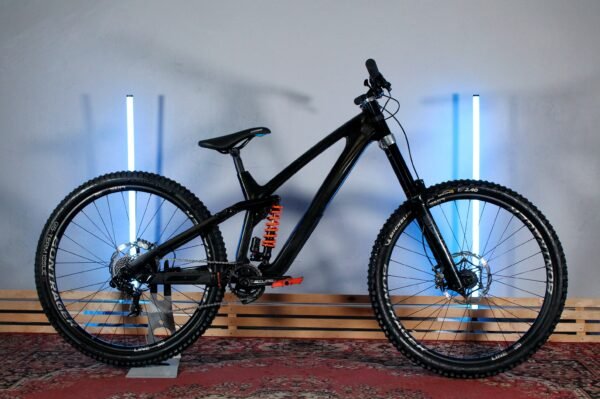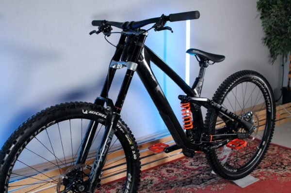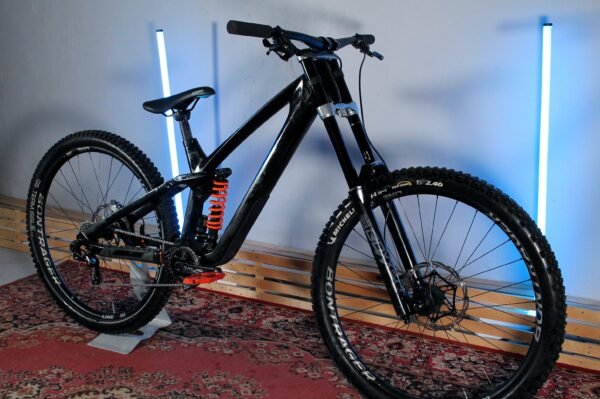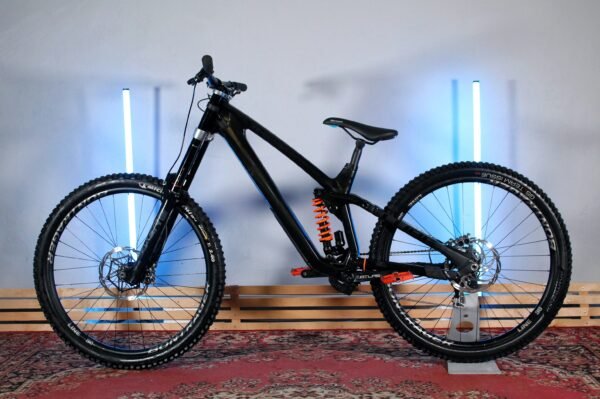 · Downhill klasės pilnos amortizacijos kalnų dviratis su anglies pluošto rėmu, skirtas bike park trasoms, greičio trasoms ir agresyviems nusileidimams pasaulio taurės lygyje