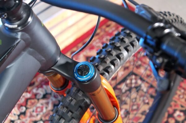 · FOX 36 Factory šakė su GRIP2 slopinimu – viena standžiausių ir tiksliausių enduro šakių agresyviam važiavimui