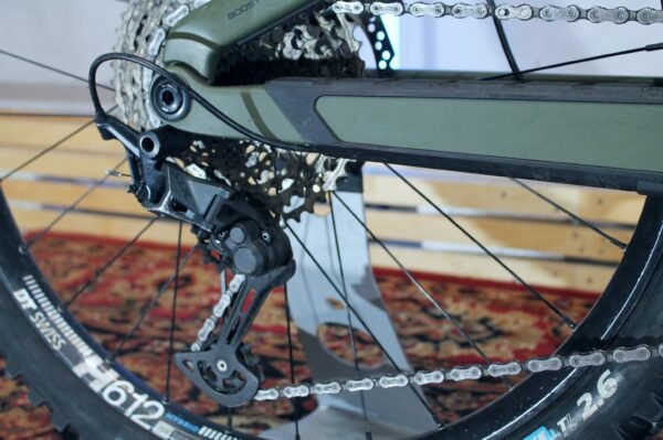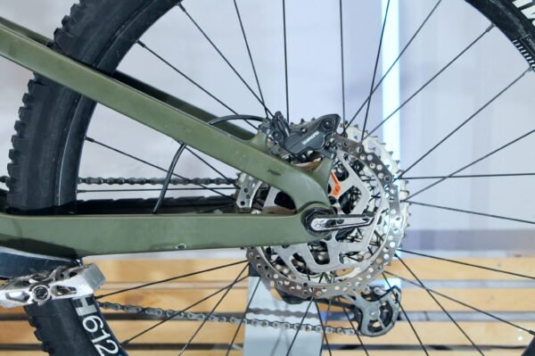 · Ratai: Bontrager / DT Swiss H612 – mullet setup (29″ priekyje / 27.5″ gale) – geresnis valdymas ir stabilumas įvairiame reljefe